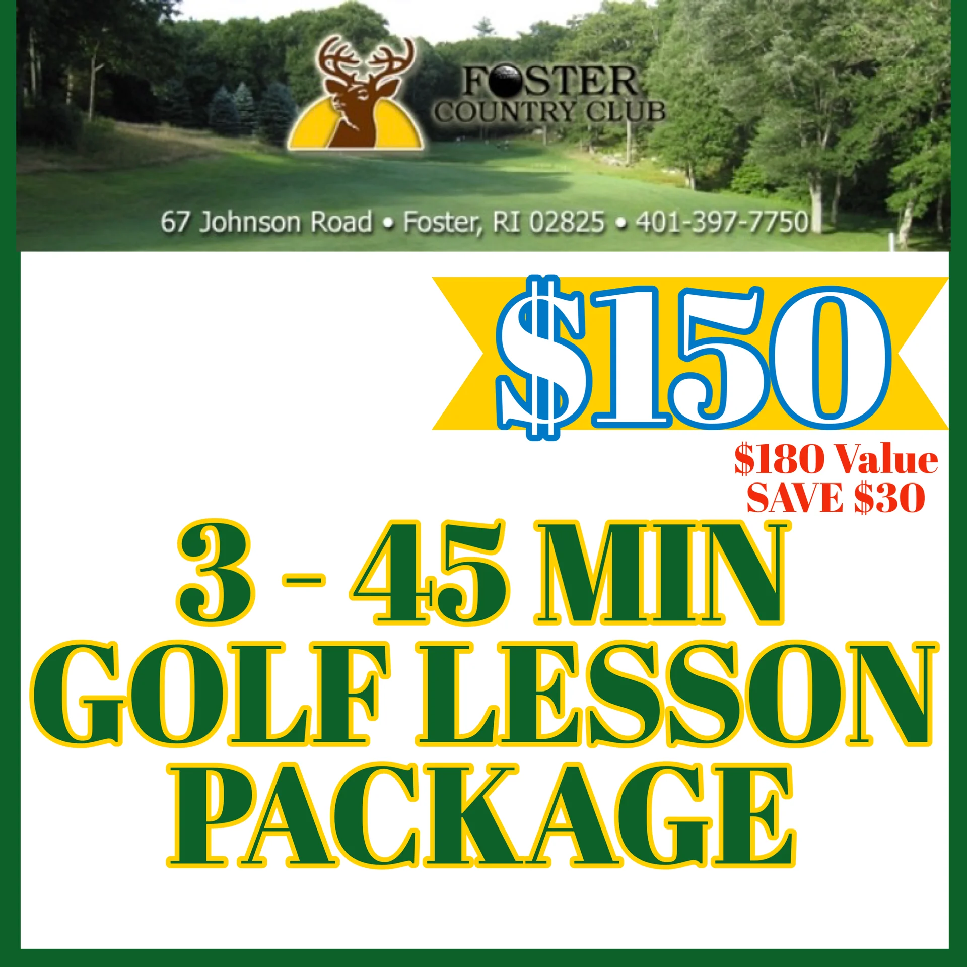 (3) 45 Minute Golf Lesson with our golf professional- Brian Benson